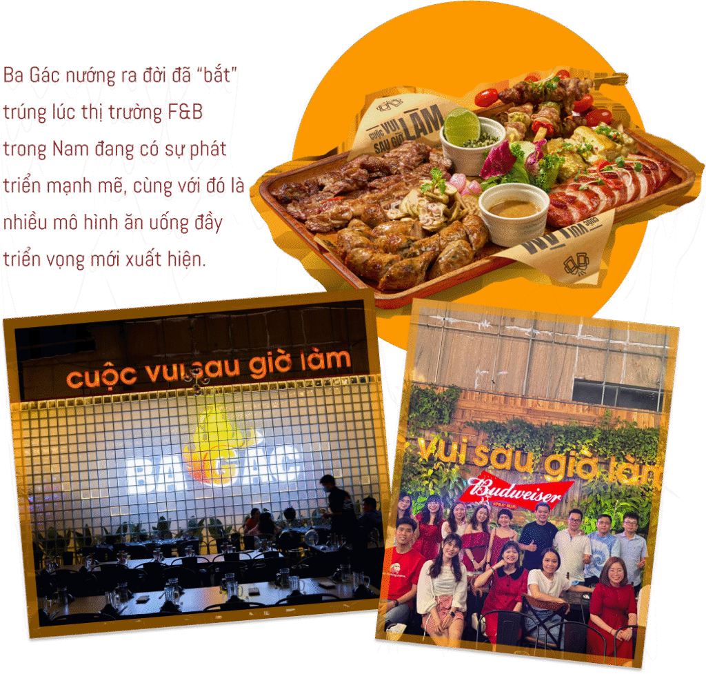 nGiai đoạn đó thị trường F&B trong Nam đang đi lên mạnh mẽ, các khu vực ngoại thành như Hóc Môn ngày càng phát triển hơn. Trùng hợp hơn nữa là mô hình bia vườn (bia garden) cũng vừa chớm nở, mới có vài người thử; nhưng cá nhân anh thấy nó đơn giản, dễ làm và sẽ có triển vọng hút khách rất lớn trong tương lai. Vậy nên sau khi bàn bạc nghiên cứu kỹ lưỡng, anh quyết định chọn mô hình này và mở quán Ba Gác nướng đầu tiên ở Hóc Môn.