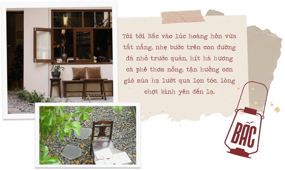 Nếu một ngày thấy đời vội vã quá, bạn hãy ghé thăm Bấc, ngồi xuống, nhâm nhi ly cà phê, thưởng thức miếng bánh chanh vàng thơm mềm, lặng nhìn thời gian trôi. Và còn tuyệt vời hơn nữa khi bạn ghé tới đây vào một ngày mùa hạ, mở cửa, hít hà không khí trong lành, ngồi ngắm nhìn những hàng cây xanh, nói với nhau dăm ba câu chuyện, hoặc chỉ đơn giản là trầm ngâm về những điều đã cũ. Bỏ qua hết những áp lực và xô bồ ngoài kia, tận hưởng khoảnh khắc yên bình hiếm hoi mà không gian nơi đây mang lại. Đây là nơi tuyệt vời để bạn “trốn" khỏi những ồn ào, náo nhiệt ngoài kia.