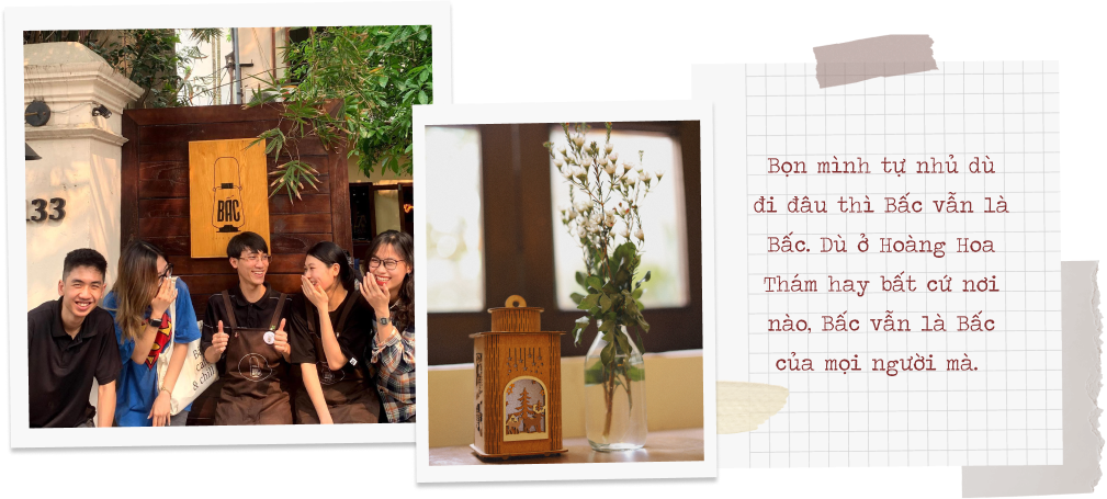Để chuyển cả một quán cà phê trong 5 ngày và đúng dịp lễ các bạn nhỏ trong quán phải về quê thật sự là điều không dễ dàng. Lúc đó bọn mình đã phải vận dụng hết mọi mối quan hệ, huy động tất cả anh em bạn bè có thể để nhờ mọi người sang chuyển đồ giúp. Đây đúng là một kỷ niệm khó quên trong hành trình gần 4 năm xây dựng Bấc.