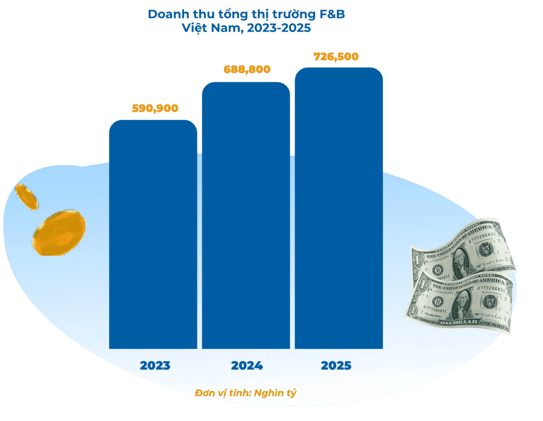 Doanh thu toàn ngành F&B năm 2025 hơn 726,5 nghìn tỷ đồng