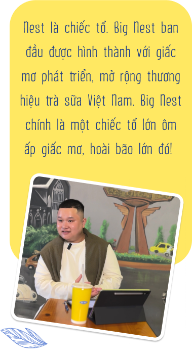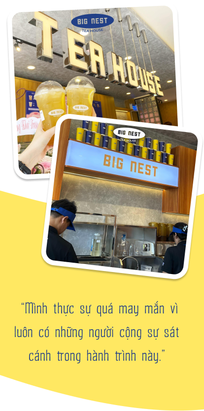 Về chiến lược dài hạn, đội ngũ Big Nest đang từng bước chuẩn bị ra mắt hệ sinh thái thương hiệu mới. Không chỉ có Big Nest Tea House mà còn nhiều thương hiệu khác với giá cả phải chăng, dễ tiếp cận. Mặc dù đây là kế hoạch đường dài, nhưng chúng mình đã bắt đầu chuẩn bị kỹ lưỡng, vì hành trình này đòi hỏi nhiều thời gian và công sức.”