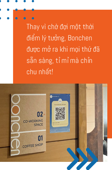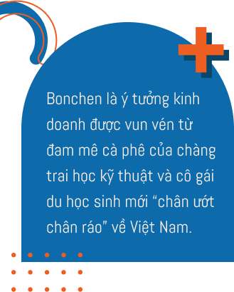 nMột điều nữa khiến em nung nấu ý định khởi nghiệp cà phê là: Sở hữu riêng cho mình một Dream Coffee Shop. Lý do bởi, em từng đi rất nhiều quán cà phê trong và ngoài nước, nhưng chưa có một nơi nào thực sự đáp ứng đủ các nhu cầu của em về thức uống, không gian và trải nghiệm dịch vụ. Bonchen là Dream Coffee Shop của em, nhưng sẽ là chốn thân thuộc của mọi người - những ai đang tìm kiếm một nơi yên bình để thưởng thức cà phê rồi chìm đắm vào học tập và công việc.