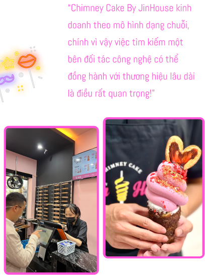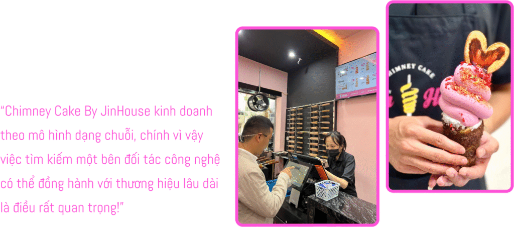 Vì Chimney Cake By JinHouse là mô hình kinh doanh theo dạng chuỗi, chính vì vậy chị cần tìm một bên đối tác công nghệ có thể đồng hành với thương hiệu lâu dài. Khi đã ứng dụng và có thời gian để đo lường hiệu quả, chị nghĩ rằng quyết định lựa chọn iPOS.vn là hoàn toàn đúng đắn.