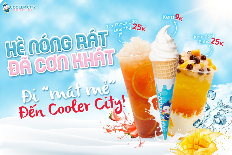 nTrà sữa Ngưu Ma Vương cũng là đồ uống “must try” của Cooler City với tỷ lệ trà và sữa chính xác tạo nên hương vị đậm đà, ngậy ngọt khó cưỡng, khi kết hợp với Trân châu caramel thì càng tuyệt hảo. Đặc biệt, vì slogan của thương hiệu là “Hè nóng rát - Đã cơn khát” nên các loại trà trái cây là nhóm sản phẩm bán rất chạy vào mùa hè. Trà chanh vàng chua ngọt, thơm thơm, mát lạnh là lựa chọn số 1 để giải nhiệt ngày hè. Không thể không nhắc đến những món nước độc lạ chỉ có thể tìm thấy ở Cooler City như Trà xoài Phuket hay Trà thạch dừa dâu tây, thưởng thức cùng hạt nổ thì cứ phải gọi là “hết nước chấm”.