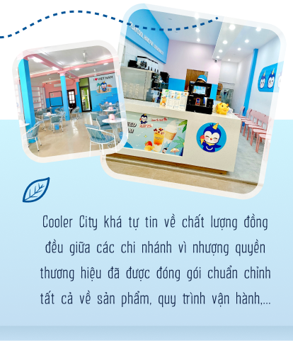 nCuối cùng, đội ngũ tổng quản lý thương hiệu Cooler City tại Việt Nam sẽ xuống cửa hàng kiểm tra xem không gian thế nào, máy móc thiết bị sạch sẽ hay không, order thử xem tốc độ làm đồ ra sao, hương vị sản phẩm đạt chất lượng hay chưa,... Sau khi tất cả mọi thứ đều ổn thì cửa hàng mới được chính thức mở bán. Nghe kể quy trình nhượng quyền có vẻ nhiều bước và cồng kềnh, nhưng thật ra nhờ đó mà mỗi cửa hàng khi khai trương đón khách đều vận hành trơn tru và không bị “ngợp” khi phải phục vụ nhiều khách trong những ngày đầu tiên.