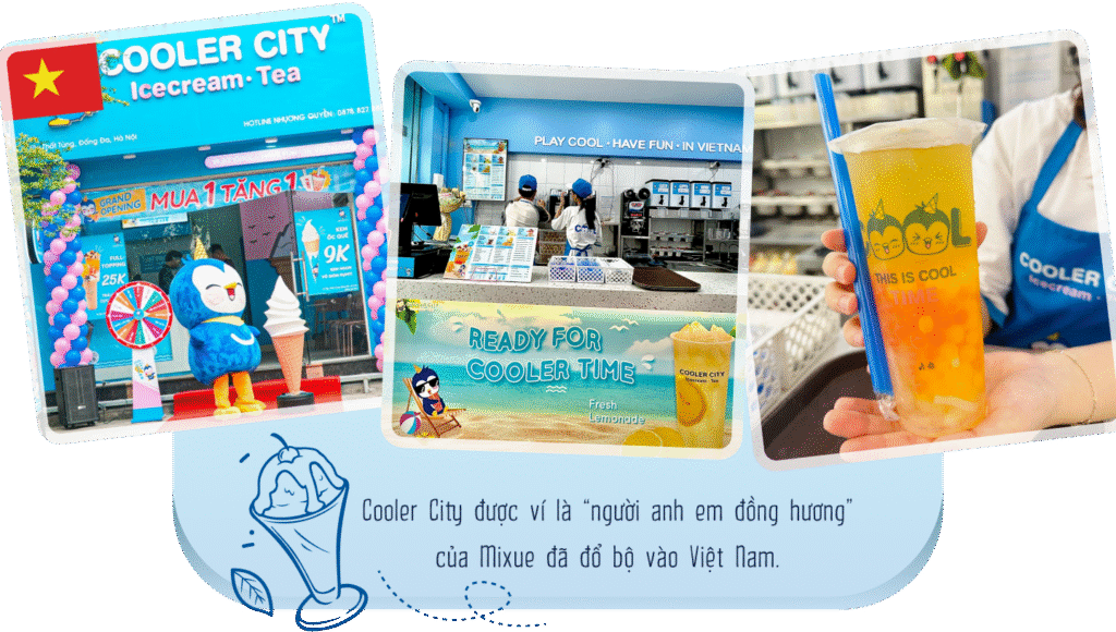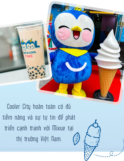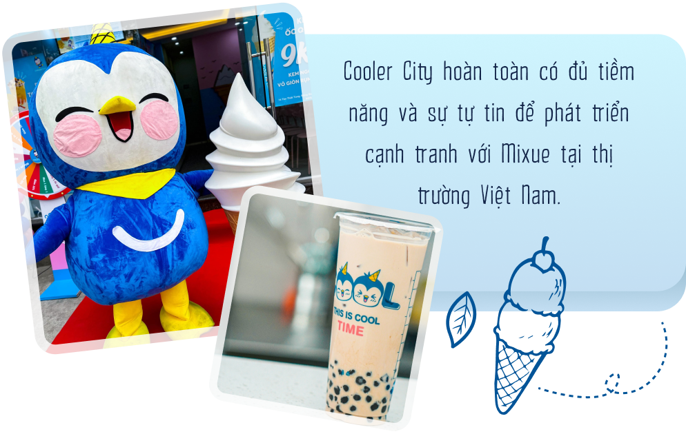 nNhư mọi người cũng biết, thời gian vừa qua Mixue là thương hiệu “làm mưa làm gió” trên thị trường F&B. Thành công của Mixue khiến anh nhận ra tiềm năng của phân khúc kem và trà sữa giá rẻ tại Việt Nam vẫn còn có thể khai thác. Vì vậy, anh mong muốn tìm được một cái tên đủ tiềm lực, quy mô cũng như phong cách, định hướng để trở thành đối thủ của Mixue tại Việt Nam. Cooler City đáp ứng được những tiêu chí đó. Tương tự như Mixue, chuỗi này cũng sử dụng hình thức nhượng quyền để mở rộng quy mô. Với sự hậu thuẫn từ Bodou, Cooler City đã có 2000 cửa hàng tại Trung Quốc, Indonesia, Philippines.n