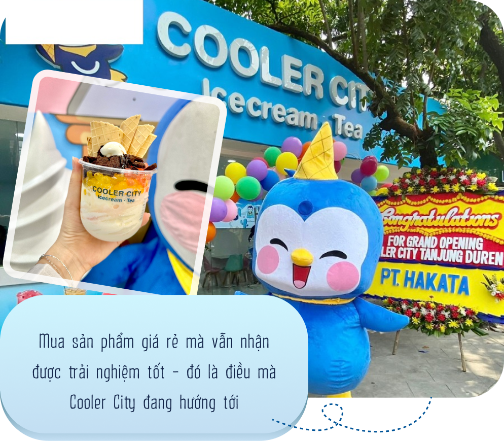 Đầu tiên là chiến lược giá rẻ, anh thấy mức giá 9 nghìn đồng/cây kem hay 25 nghìn đồng/cốc trà sữa là mức giá hợp lý để thu hút được tệp khách hàng học sinh, sinh viên. Tuy nhiên, điều anh muốn ưu tiên trên hết chính là nâng cao trải nghiệm khách hàng trong phân khúc giá rẻ. Cooler City muốn khách hàng cảm thấy rằng chỉ cần bỏ ra vài nghìn đến vài chục nghìn cho một sản phẩm nhưng họ vẫn nhận được dịch vụ tốt, chẳng hạn như tốc độ order và làm đồ nhanh chóng, nhân viên tư vấn và phục vụ nhiệt tình,... n