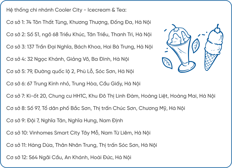 nCảm ơn anh về những kinh nghiệm kinh doanh quý báu đã chia sẻ! Chúc thương hiệu Cooler City sẽ tiếp tục phát triển hơn trong tương lai và trở thành một trong những chuỗi kem và trà sữa thành công nhất trên thị trường!