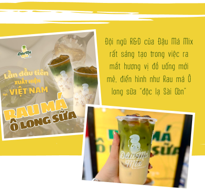 Nhiều người nói rằng đồ uống rau má khá nhạt nhòa, không hấp dẫn, phải chăng sự kết hợp giữa sữa đậu và rau má chính là điểm nhấn trong sản phẩm của Đậu Má Mix? Đậu Má Mix cũng thường xuyên ra mắt những công thức đồ uống mới để mang đến sự mới mẻ cho khách hàng?