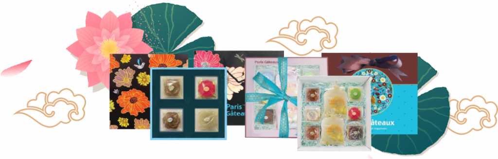 Năm nay, Paris Gâteaux sáng tạo 2 hộp quà trung thu với 2 phong cách khác nhau để khách hàng lựa chọn. Set đầu tiên là Vintage Mooncake GiftBox, bao gồm các loại bánh thơm ngon, dễ nghiện như Lava Hồng Kông, Macaron Pháp, bánh trung thu truyền thống Việt Nam và kẹo Nougat Pháp. Set thứ hai mang tên Royal Mooncake GiftBox, sang chảnh và đa dạng lựa chọn hơn. Bên cạnh những loại bánh vừa kể trên, set này có thêm bánh dứa Taiwan và bình trà Roseni. Không những vậy, khách hàng cũng có thể lựa thêm hộp quà trà Ô Long đỏ Đài Loan thượng hạng để thưởng thức kèm bánh.