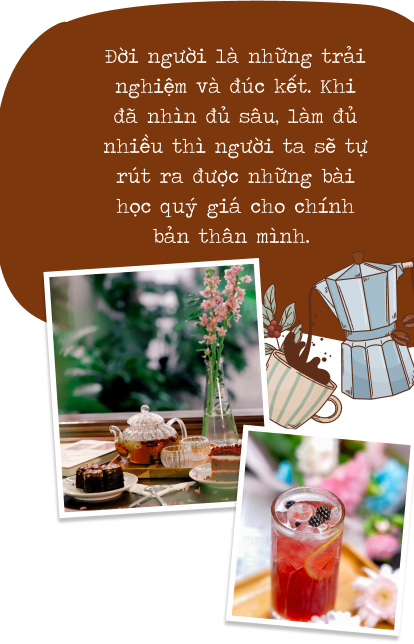 Với kinh nghiệm làm quán và đi cà phê suốt bao năm qua, mình nhận ra rằng đồ uống chỉ chiếm khoảng 20 - 30% lý do khách hàng đến và ở lại lâu dài với một quán cà phê. Vì vậy, bên cạnh chất lượng đồ uống thì mình cũng tập trung khá nhiều nguồn lực vào việc phát triển các dịch vụ còn lại như không gian quán, phong cách phục vụ, bầu không khí,... Ví dụ như khi khách hàng đến quán và được nhân viên phục vụ tận tình hay không gian quán mình “chuẩn gu” của họ thì người ta sẽ có khả năng quay lại cao hơn, thậm chí là ghé thường xuyên và trở thành khách quen. Bởi lẽ những trải nghiệm khách hàng tích cực tại đây sẽ hình thành những ký ức tốt cho mọi người, khiến họ có cái nhìn thiện cảm hơn với quán của mình.