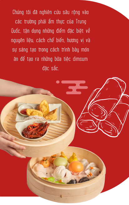 Thật may mắn vào thời điểm ấy, tôi có cơ hội hợp tác với một đầu bếp có tay nghề lâu năm về ẩm thực Trung Hoa, bạn thân và cũng là người đồng hành tin cậy của tôi. Tôi có cơ hội mang đến một thế giới dimsum đầy phong phú, đồng thời mở ra những khía cạnh đặc biệt của ẩm thực Trung Hoa mà tôi muốn chia sẻ với cộng đồng.