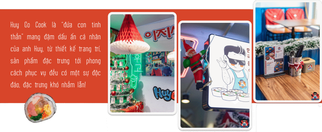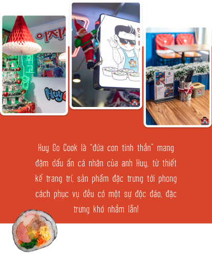 Không chỉ chăm chút về không gian hay sản phẩm mà anh còn muốn Huy Go Cook có một sự ghi dấu mạnh mẽ với khách hàng, sao cho họ có thể dễ dàng nhận ra quán dù là từ những chi tiết nhỏ. Vì thế, anh đầu tư rất mạnh và làm chỉn chu trong việc đồng bộ bộ nhận diện, đóng logo cửa hàng từ biển bảng, nội thất, Fanpage cho tới các sản phẩm packaging nhỏ như đũa hay thìa.