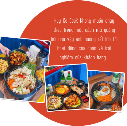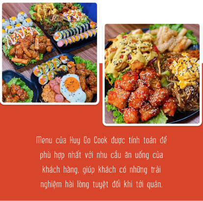 So với một vài quán cùng phân khúc, có thể mọi người sẽ thấy menu của Huy Go Cook khá đơn giản và không có sự xuất hiện của các món Hàn “nhẵn mặt” khác như mì lạnh, mì cay chẳng hạn. Tuy nhiên, đây hoàn toàn là chủ ý của anh và team bởi bên anh muốn tập trung vào những dòng sản phẩm signature mà quán có thế mạnh nhằm mang đến trải nghiệm tốt nhất cho khách hàng, tránh việc làm dàn trải món nhưng không có món nào thật sự đặc sắc cả.