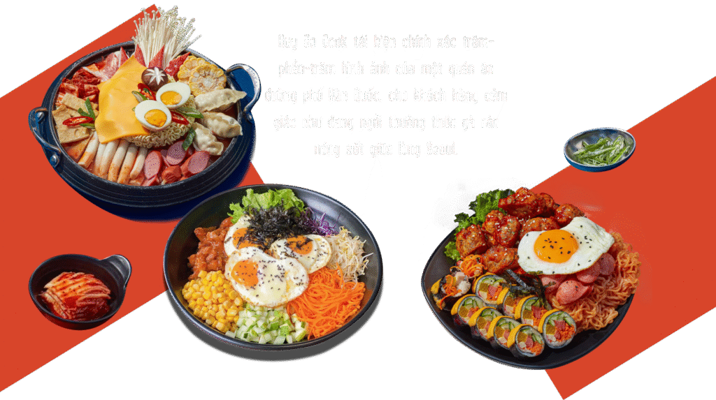 Khi làm menu, anh có cân đối về số lượng và thành phần giữa các món, làm sao để các món vừa mang đặc trưng của ẩm thực Hàn, vừa dễ dàng có thể kết hợp và ăn kèm với nhau. Menu được phân ra làm nhiều dòng sản phẩm, chia thành món lẻ, combo, box hoặc set, phù hợp với nhu cầu của từng nhóm khách hàng; dù họ đi một mình, đi theo cặp, theo nhóm đông người cũng đều sẽ có lựa chọn hợp với nhu cầu ăn uống của mình.