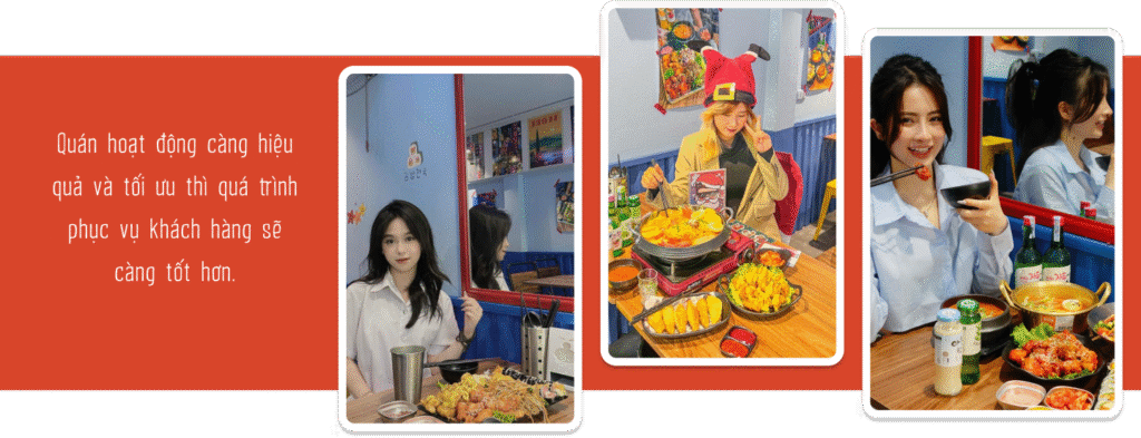 Bù lại thì anh nghĩ đây là một khoản đánh đổi xứng đáng, có thể trước mắt thì tiền lãi từ mỗi món bán ra sẽ không quá cao nhưng chất lượng món ăn rất chỉn chu và tròn vẹn chuẩn vị Hàn Quốc, hoàn toàn làm hài lòng khách hàng. Như vậy sẽ giúp mình xây dựng ấn tượng tốt với khách, khách sẵn sàng quay lại lần 2, lần 3, lần thứ n sau đó hay thậm chí là rủ cả người quen đi cùng. Về lâu về dài, số lượng khách hàng của quán sẽ tăng thêm và trở thành tệp khách quen thường xuyên ghé quán, đó mới là nguồn lợi nhuận ổn định và lâu dài mà quán hướng tới.