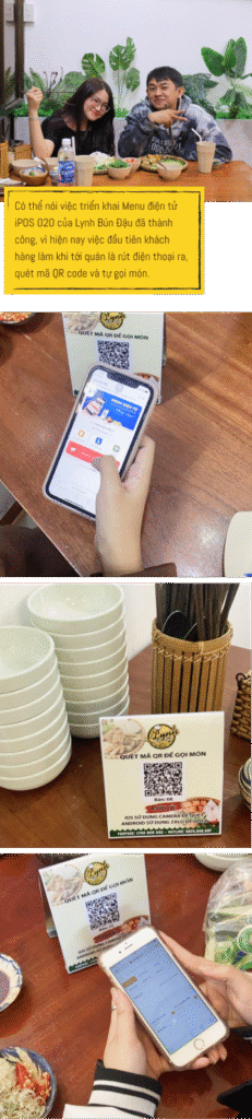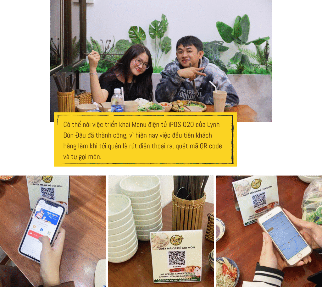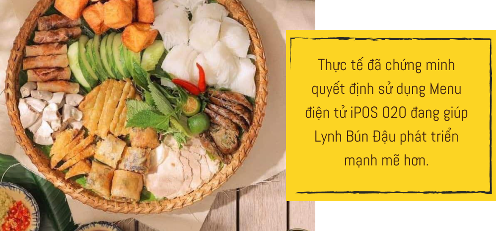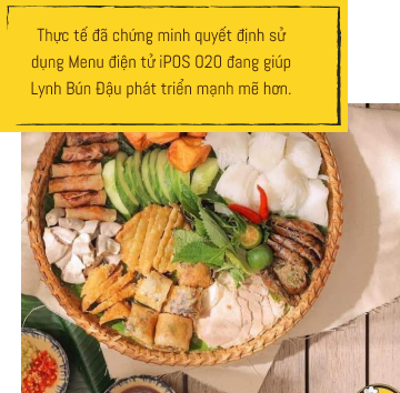 nVà thực tế đã chứng minh rằng sự tin tưởng này của anh là đúng khi iPOS O2O đang giúp Lynh Bún Đậu phát triển mạnh mẽ. Order bằng iPOS O2O khắc phục hoàn toàn những nhược điểm của cách order truyền thống như: không lo bị nhầm lẫn hay sót món, giảm tình trạng nhân viên bị quá tải trong lúc đông khách, giảm thời gian chờ đợi của khách hàng xuống nên hệ số quay vòng bàn nhanh hơn và doanh thu cũng tăng lên,... n