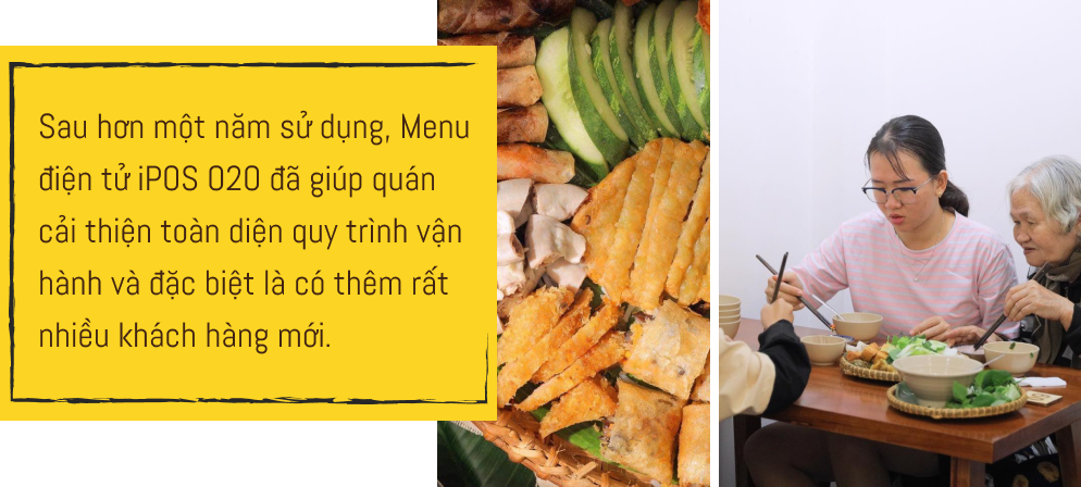 nMọi người chia sẻ với anh rằng họ rất thích cách order mới lạ này vì nó thú vị, tiện lợi và nhanh chóng; người này giới thiệu cho người kia tới quán ăn thử để được thưởng thức đặc sản Hà Nội và trải nghiệm quét mã QR code gọi món. Thậm chí có những khách hàng cũng kinh doanh F&B cũng hứng thú và hỏi anh về kinh nghiệm triển khai Menu điện tử iPOS O2O cho quán. n