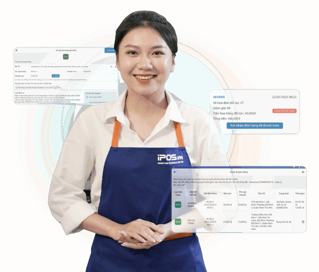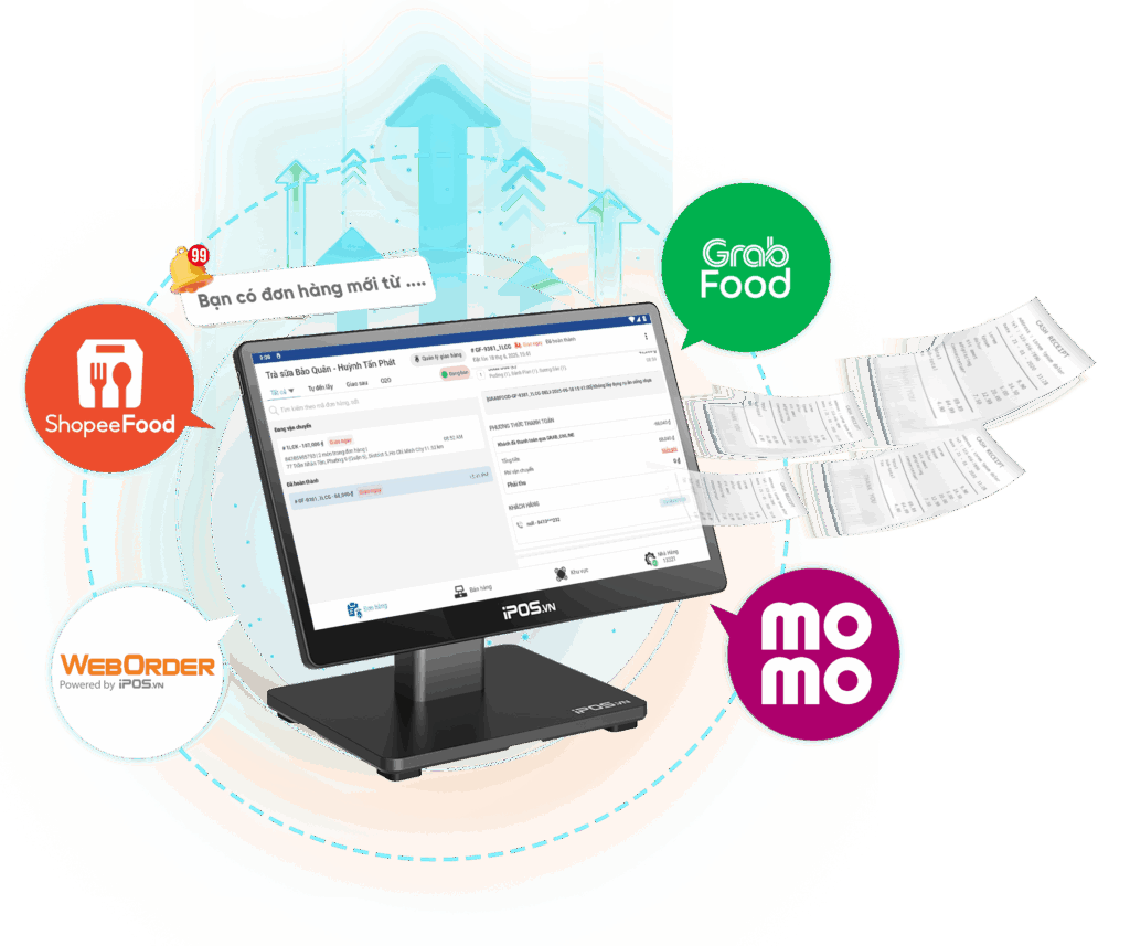 iPOS cung cấp giải pháp bán hàng online toàn diện cho chủ quán F&B: Tăng tốc phục vụ, theo dõi đơn hàng thuận tiện, quản lý tập trung. Các đơn hàng từ các nền tảng đặt đồ ăn trực tuyến được đồng bộ về máy tính tiền POS qua phần mềm iPOS FABi thay vì sử dụng nhiều thiết bị khác nhau.