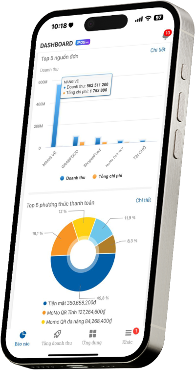 Nhận báo cáo từ tổng quan tới chi tiết: Doanh thu theo ngày/ tháng; Đối soát chi phí; Nguồn đơn...