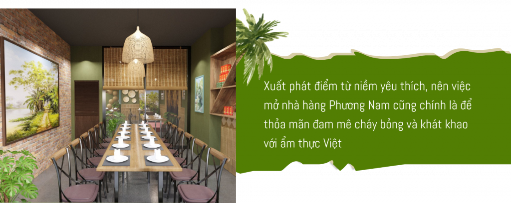 Thời điểm đó ở Hà Nội chưa có một nhà hàng nào thuần đồ miền Nam. Đây chính là lợi thế và cũng là cơ hội lớn mà anh chị muốn chớp lấy. Đó là khởi nguồn cho thương hiệu Phương Nam với cơ sở đầu tiên tại Chùa Láng.