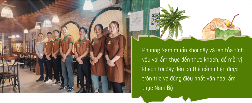 Phương Nam muốn truyền tải cho khách hàng điều đó, từ nguồn gốc đến lịch sử và hương vị món ăn để khách hàng có thể cảm nhận được tròn trịa và đúng điệu nhất ẩm thực Nam Bộ.