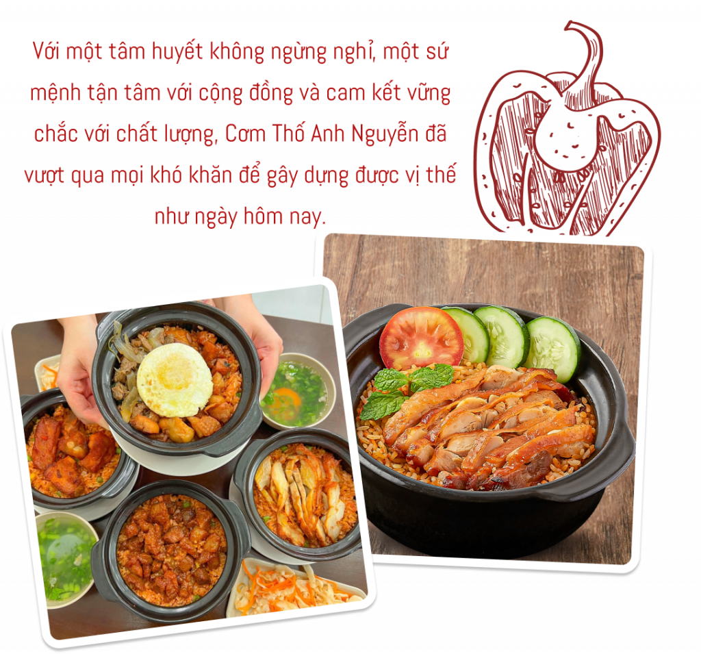Việc xây dựng uy tín từ chất lượng của sản phẩm và dịch vụ không chỉ cần đầu tư về mặt tài chính mà còn đòi hỏi sự chăm chỉ, tận tâm và tôn trọng đối với từng khách hàng, từng món ăn tại các điểm nhượng quyền. Với một tâm huyết không ngừng nghỉ, một sứ mệnh tận tâm với cộng đồng và cam kết vững chắc với chất lượng, Cơm Thố Anh Nguyễn đã vượt qua mọi khó khăn để gây dựng được vị thế như ngày hôm nay. Sự kiên trì trong việc thực hiện đúng những giá trị cốt lõi, chăm sóc tận tâm đến từng khách hàng và khả năng linh hoạt trong việc thích nghi với thị trường đã tạo nên bức tranh thành công rực rỡ cho hành trình phát triển của Cơm Thố Anh Nguyễn trên bản đồ ẩm thực Việt Nam.