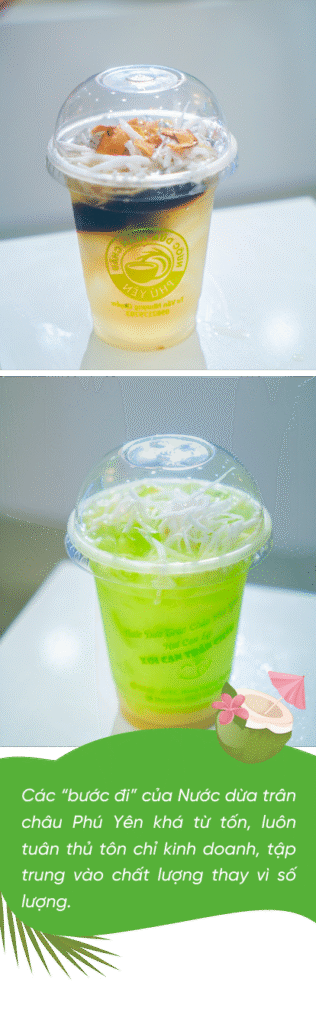nCác “bước đi” của Nước dừa trân châu Phú Yên khá từ tốn, từ những cái đơn giản nhất như tìm hiểu về đồ uống để update thực đơn, gần như thương hiệu phải trải qua quy trình kỹ càng, nghiêm ngặt.