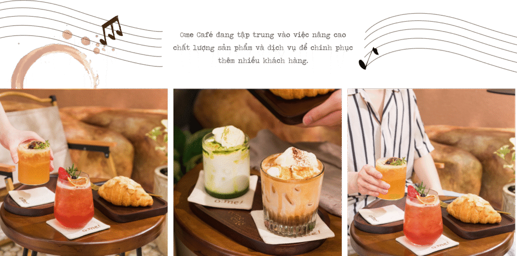 nTừ những kết luận đó, chị so sánh O:me Café với các quán trên để biết điểm giống và khác nhau, sau đó sẽ tìm cách để khắc phục những thiếu sót cũng như đẩy mạnh các ưu thế của quán. Đặc biệt, chị chú trọng nhất vào việc xây dựng quy trình vận hành tối ưu nhất có thể cho O:me Café, đảm bảo quán luôn hoạt động nhịp nhàng theo một luồng công việc ổn định, các khâu không bị rối loạn dù cho thiếu nhân sự hoặc không có quản lý giám sát.