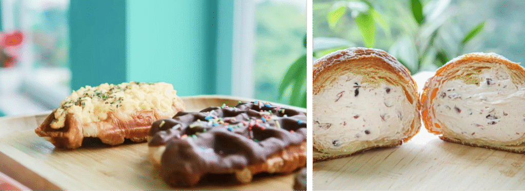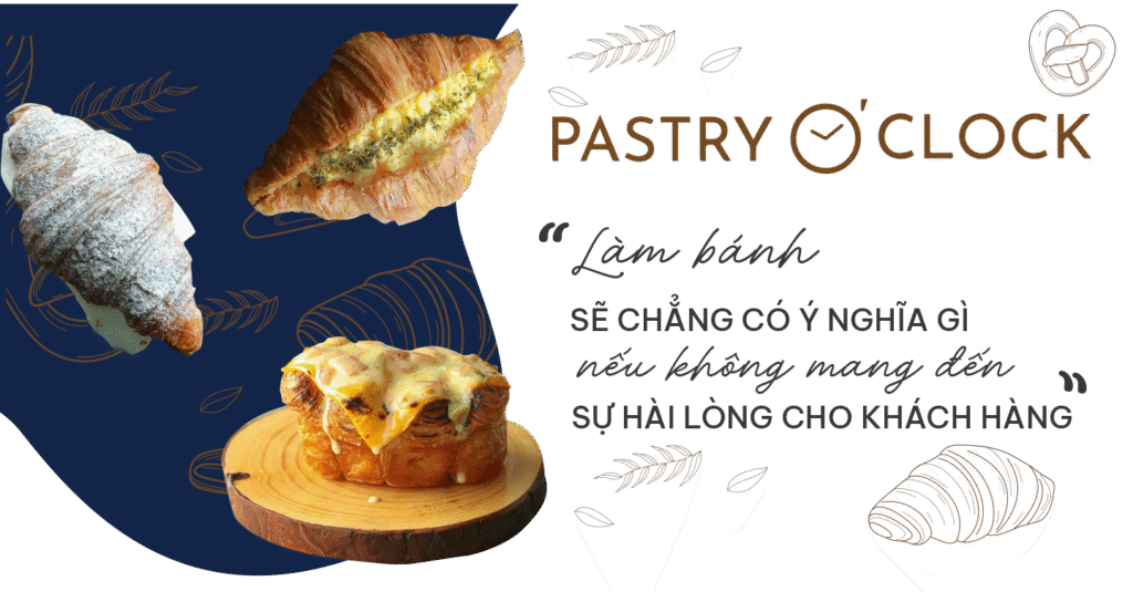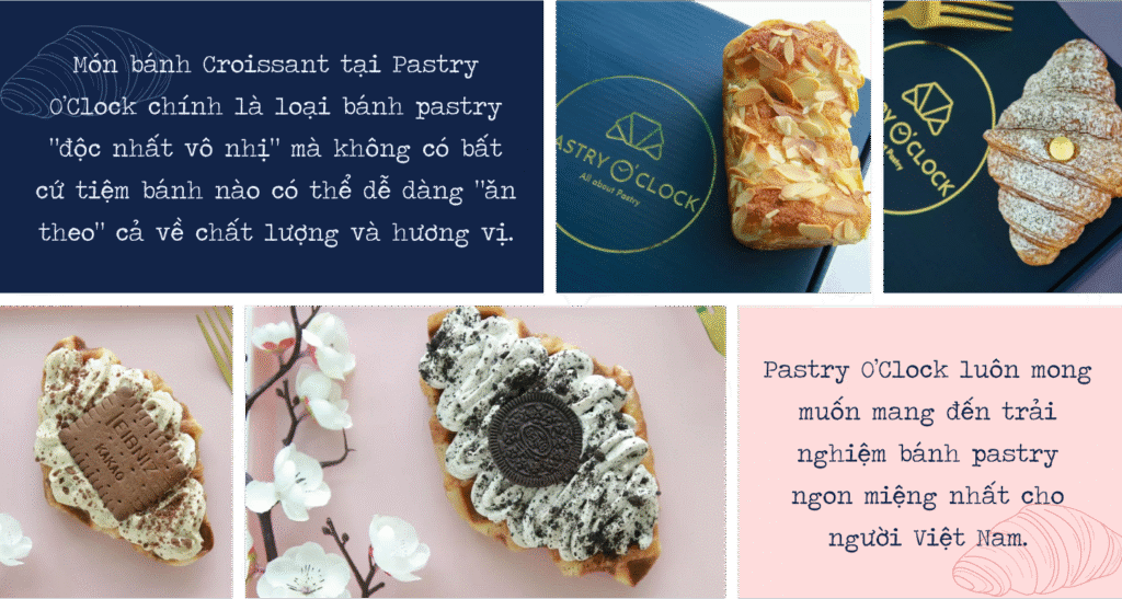 nĐể tăng thêm tính cạnh tranh cho thương hiệu trên thị trường bánh mì, bọn mình đã chọn kinh doanh loại bánh pastry phức tạp để có được sự ủng hộ trung thành của khách hàng. Có rất nhiều loại bánh mì, thế nhưng pastry là loại bánh phức tạp, đòi hỏi kỹ năng cũng như kinh nghiệm làm bánh cực kỳ quan trọng. Không nhiều người có thể tạo ra một loại bánh pastry chất lượng cao. Món bánh Croissant tại Pastry O’Clock chính là loại bánh pastry “độc nhất vô nhị” mà không có bất cứ tiệm bánh nào có thể dễ dàng “ăn theo” cả về chất lượng và hương vị.