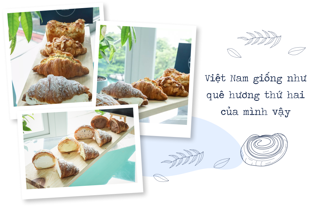 nKhi quyết định sinh sống tại Việt Nam, mình đã nghĩ rằng nơi này sẽ là một đất nước tiềm năng để phát triển. Và sau đó mình chọn nghỉ việc, bắt tay vào khởi nghiệp tiệm bánh Pastry O'Clock. Mình nhận ra đây chính là “thời điểm vàng” để bản thân tìm kiếm được nhiều cơ hội, tích lũy nhiều kinh nghiệm và có thêm động lực để xây dựng sự nghiệp của riêng mình.n