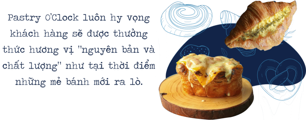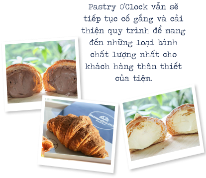 nTrong tương lai, Pastry O’Clock vẫn quyết định giữ nguyên công thức làm bánh ban đầu, chỉ tập trung cải thiện chất lượng và hương vị của từng loại bánh để cung cấp món bánh pastry ngon nhất cho tất cả những vị khách thân yêu của tiệm.