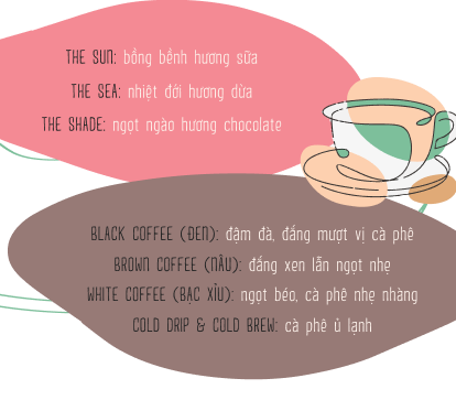 Tôi không nhớ rõ menu RGB Coffee có tất thảy bao nhiêu món đồ uống. Nhưng nếu có một ai bất chợt hỏi về cà phê nào “ổn áp”, tôi sẽ không ngần ngại mà giới thiệu họ ngay bộ sưu tập cà phê đóng chai của RGB Coffee. Có thể nói, đây là sản phẩm signature khiến người ta phải nhớ thương về quán. Bộ sưu tập bao gồm tám hương vị. Bộ ba truyền thống có Black, Brown, White và cà phê ủ lạnh. Còn bộ ba đặc biệt là The Sun, The Sea và The Shade. Để đảm bảo chất lượng cho sản phẩm, mỗi tuần RGB chỉ sản xuất 50 chai cà phê ủ lạnh. Công bằng mà nói, cả tám hương vị này là tám sắc thái khác nhau - không thể phân định đâu là vị cà phê ngon nhất.