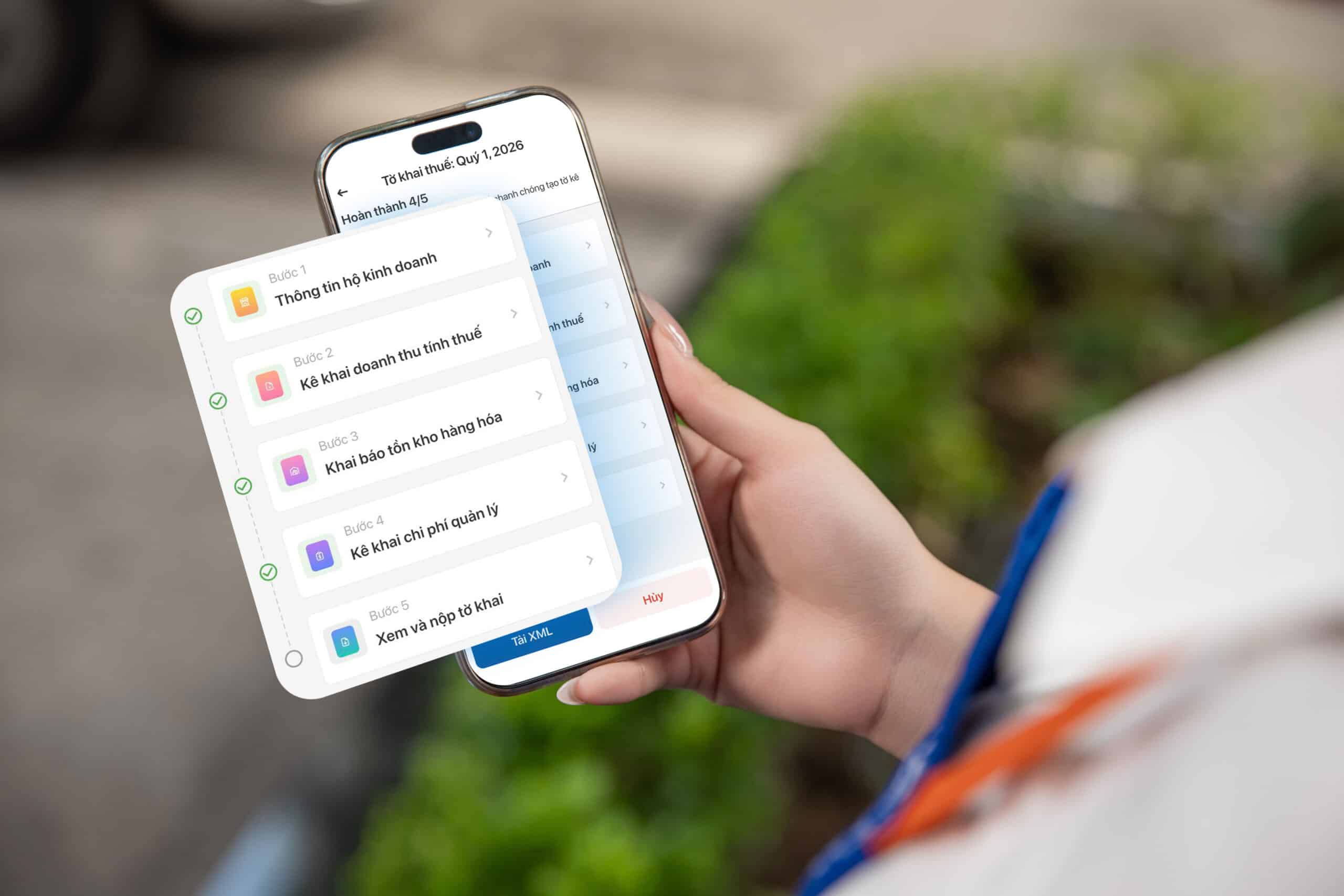 Dữ liệu doanh thu, chi phí và tồn kho được hệ thống tổng hợp để lên Tờ khai thuế Mẫu số 01/CNKD và Phụ lục Bảng kê hoạt động kinh doanh trong kỳ của HKD, CNKD Mẫu số: 01-2/BK-HĐKD, Phụ lục giảm thuế GTGT (nếu có)