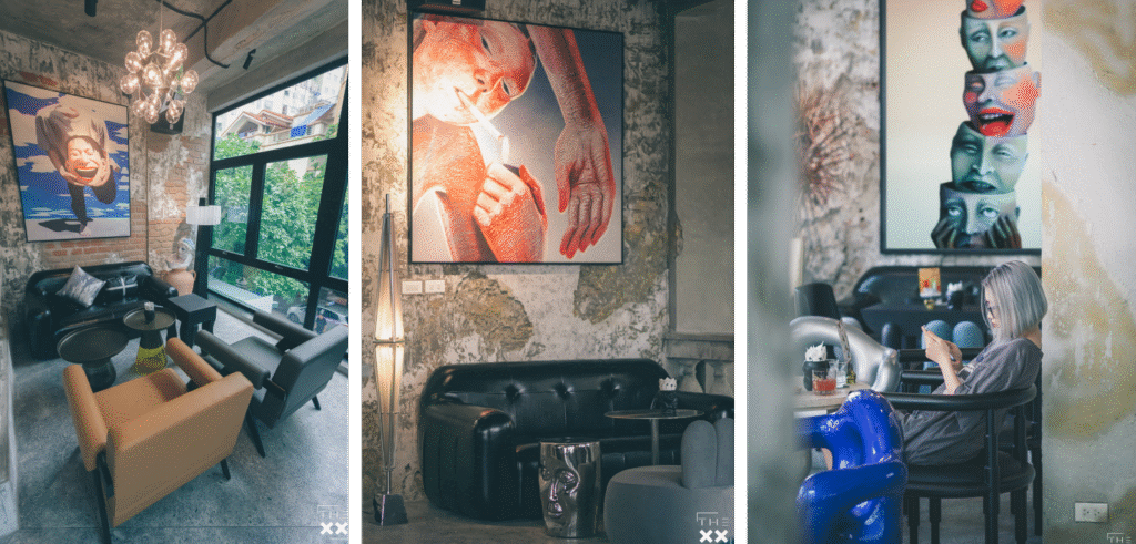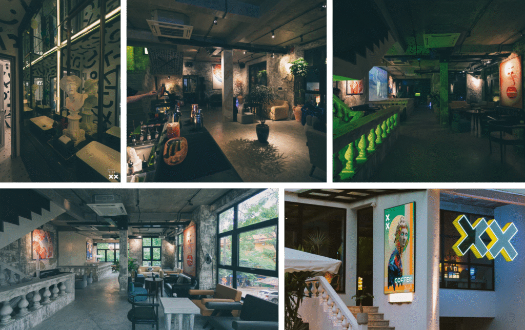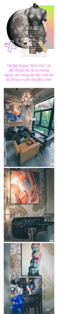 Còn về cách thức tích hợp mô hình 2 trong 1, thực tế khi đi vào setup quán, bên mình không hoàn thiện hết tất cả mọi thứ ngay lập tức mà đi vào vận hành luôn. Khi ấy mới thấy không phù hợp chỗ nào thì thay đổi, hoặc thiếu cái gì sẽ lắp ghép thêm. Ví dụ như góc tường này còn thiếu tranh thì mua thêm, góc kia thiếu bàn ghế thì đặt vào. Phải đến hiện tại, The XX mới gần như đã hoàn thiện được 100%.