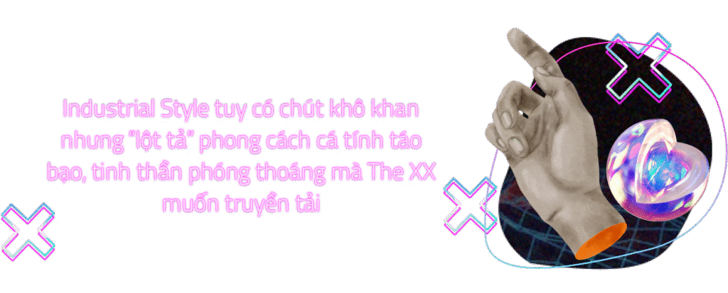 Đối tượng The XX hướng đến là các bạn trẻ, độ tuổi từ 18 - 30 tuổi, do đó mình đã lựa chọn phong cách cho quán là Industrial. Một không gian chú trọng chất cá tính và táo bạo, có vẻ ngoài xù xì từ sự thô ráp của công nghiệp kết hợp với nét hiện đại trong các đồ nội thất, tạo ra sự đối lập để gây ấn tượng mạnh về mặt thị giác với khách hàng. Đây là phong cách được quốc tế ưa chuộng và thịnh hành, các bạn trẻ đón nhận rất nhiều hiện nay.