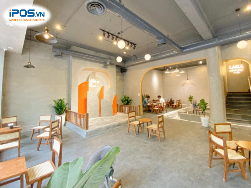 Toàn bộ bàn ghế trong quán được bố trí khoa học và có sự liên kết nhau, cùng lối đi lại rộng rãi thênh thang, hạn chế việc nhân viên và khách va chạm vào nhau.