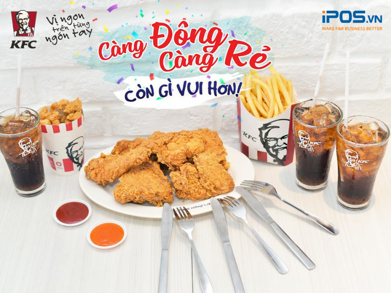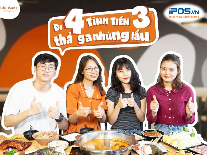 Hình thức khuyến mãi “đi càng đông càng rẻ” thường thường xuyên được áp dụng tại các nhà hàng buffet lẩu, nướng có tên tuổi như Seoul Garden, King BBQ, Lẩu Phan,… Nhìn chung, cách thức khuyến mại khi đi theo nhóm này được đánh giá rất hiệu quả trong việc kích cầu kinh doanh. Theo phân tích thực tế, những chương trình khuyến mãi như vậy sẽ giúp nhà hàng thu hút một lượng khách lớn và gia tăng giá trị cho mỗi hóa đơn.