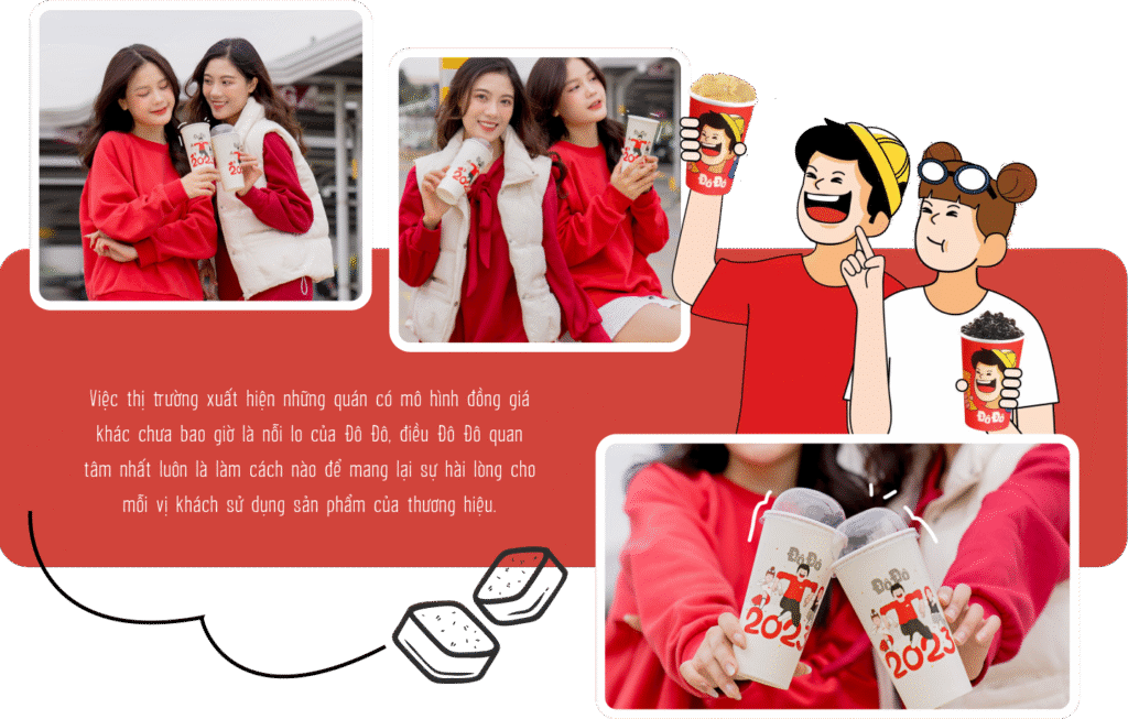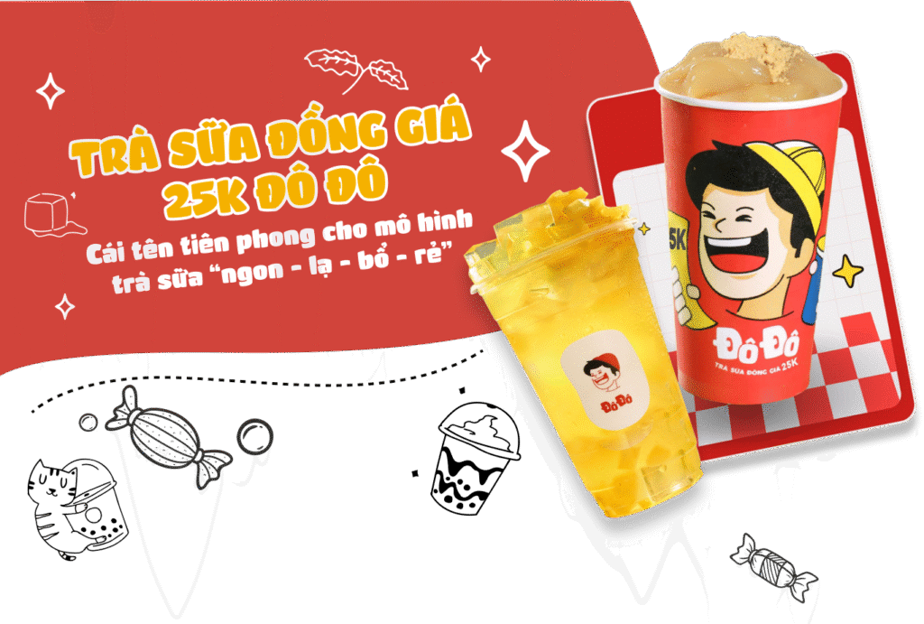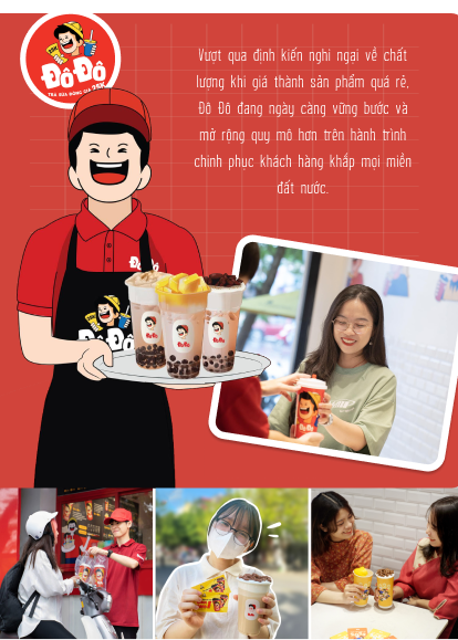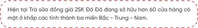 nNổi lên ngay từ thời điểm mới ra mắt, chuỗi trà sữa đồng giá 25K Đô Đô đã nhanh chóng thu hút một lượng lớn khách hàng tới thử vì… tò mò: “Trà sữa đồng giá là tất cả món đều có giá như nhau hả? Lại còn chỉ 25 nghìn nữa, rẻ quá!”. Từ chỗ bị nghi ngại về chất lượng với mức giá bình dân như vậy, đến nay Đô Đô đã dùng 3 năm nỗ lực phát triển để chứng minh cho khách hàng biết: Thương hiệu có tâm - có tầm - có sản phẩm đạt chuẩn đáp ứng đầy đủ các tiêu chí vệ sinh - an toàn thực phẩm.