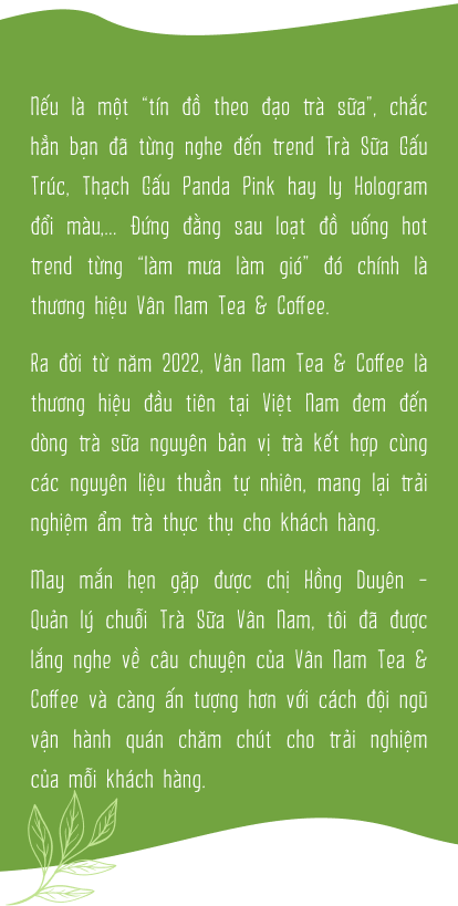 Chỉ mới ra đời hơn 1 năm, nhưng Vân Nam Tea & Coffee đã trở thành cái tên được nhắc đến nhiều bởi những người thưởng thức trà sữa có gu. Vậy chị có thể chia sẻ thêm về câu chuyện ra đời của Vân Nam không?